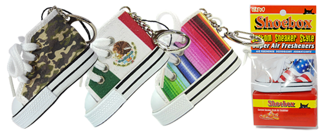 | リアルなミニ スニーカーの吊り下げ式エアーフレッシュナーです! キーホルダーとしてもご利用いただけます。 |
